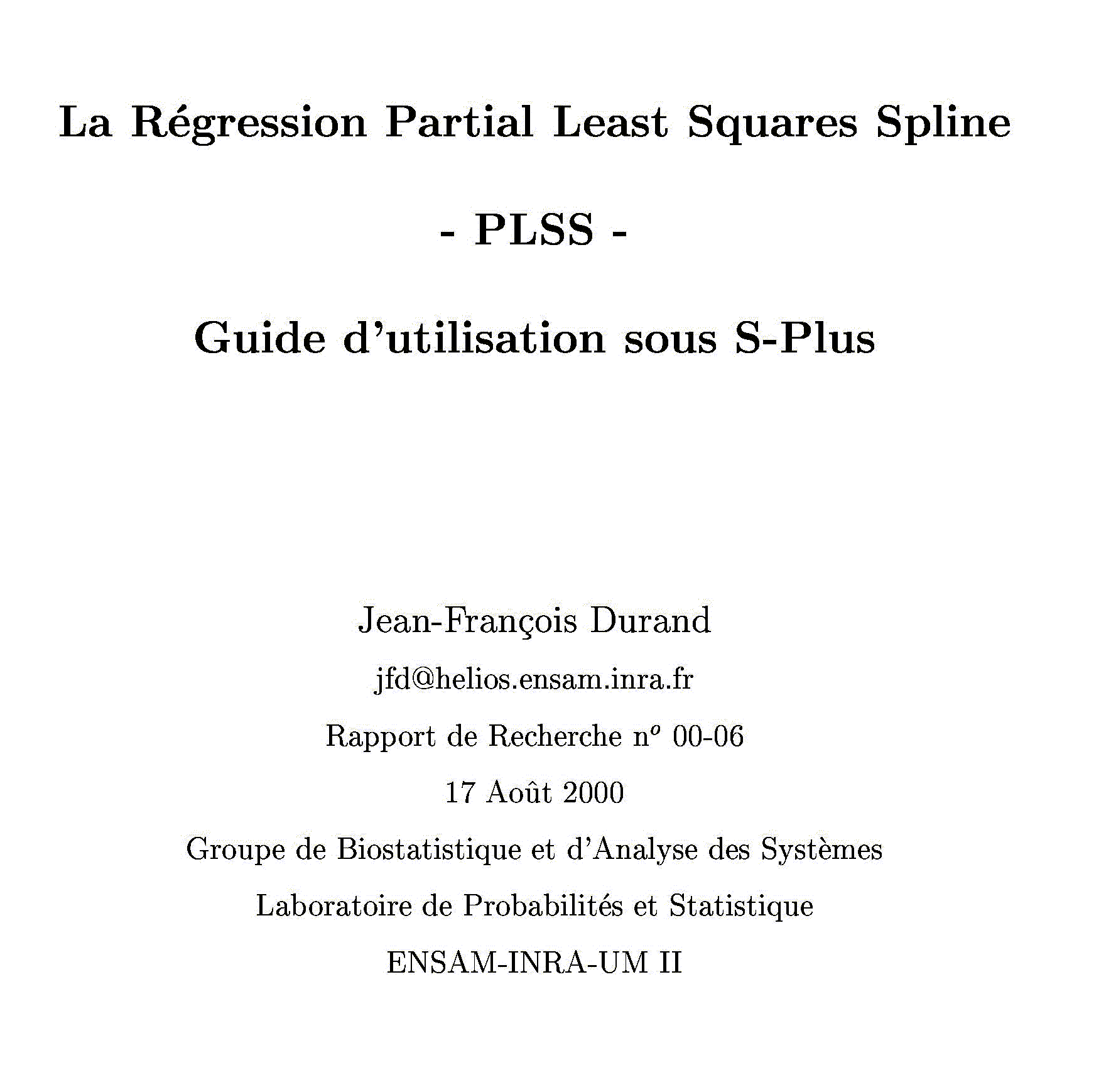 presents in French, the release 9.6 of PLS through Splines. The current